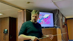 Начальник экспедиции Сколотнев Сергей Геннадьевич, доктор геолого-минералогических наук, заведующий лабораторией геологии и рудогенеза океанической литосферы Геологического института РАН.
